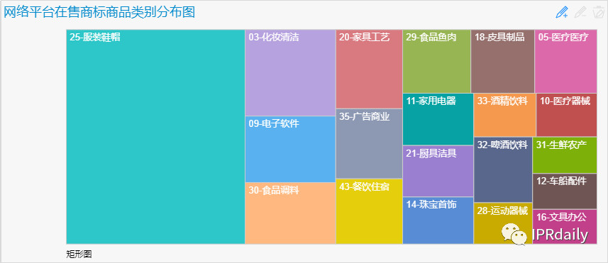 网络在售商标:数据来源某知名网络交易平台,统计在售商标最多的20个商品类别。
