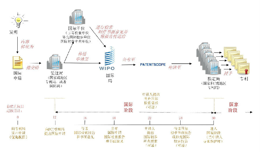 受理国的专利局作为国际检索单位,在接到PCT申请后,在规定的时间内对该申请进行检索,并做出国际检索报告。以受理国为中国为例,中国国家知识产权局将作为国际检索单位将对PCT专利申请进行检索,并作出国际检索报告。该检索报告在规定的时间内将送交该PCT专利申请人和WIPO。