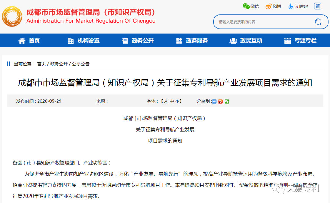 成都市市场监督管理局(知识产权局)关于征集专利导航产业发展项目需求的通知