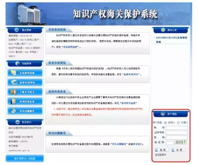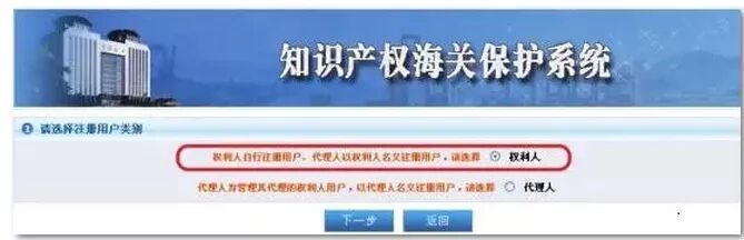 知识产权权利人可以登陆中国海关总署的知识产权海关保护系统http://www.haiguanbeian.com,以知识产权权利人的名义进行注册。