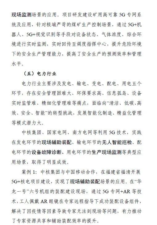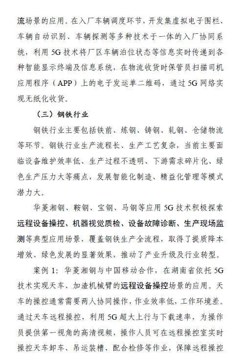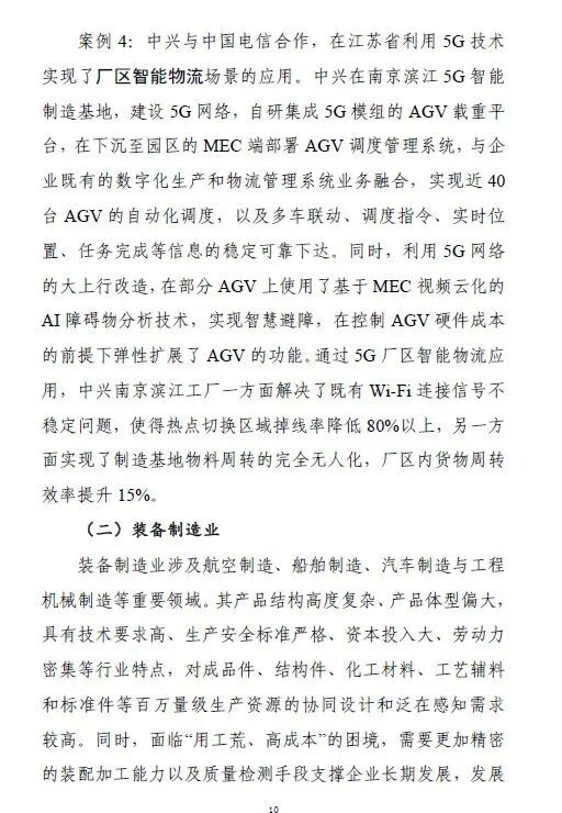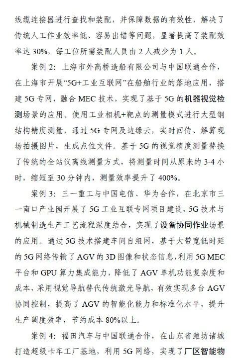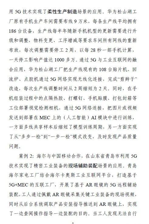 为系统总结发展成效,向更多行业和企业应用“5G+工业互联网”提供具有借鉴意义的模式和经验,我局会同各省(自治区、直辖市)工业和信息化主管部门、通信管理局,经地方推荐、企业报送、专家评审等环节,总结形成《“5G+工业互联网”十个典型应用场景和五个重点行业实践》,具体介绍10个典型场景及5个重点行业“5G+工业互联网”的实际应用情况。