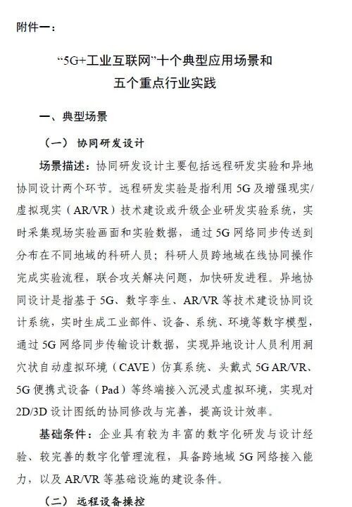 附件1:“5G+工业互联网”十个典型应用场景和五个重点行业实践