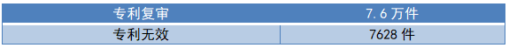 在专利复审、无效方面,全年共受理专利复审请求 7.6 万件,同比增长 39.2%。其中,对驳回发明专利申请决定不服的复审请求占当年受理总量的 96.7%;对驳回实用新型专利申请决定不服的复审请求占当年受理总量的 2.8%;对驳回外观设计专利申请决定不服的复审请求占当年受理总量的 0.49%。结案周期平均为 16.4 个月。