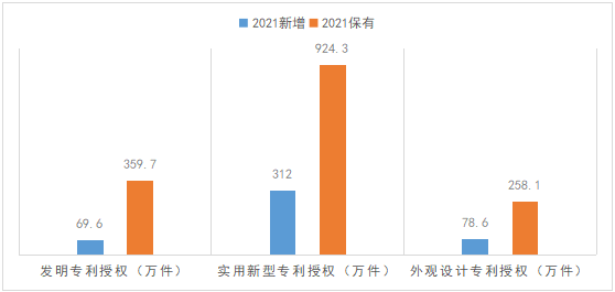 2021 年,各类知识产权审批登记数量持续增长,审查质量与效率显著提高。如表2、3,图3、4所示: