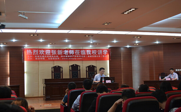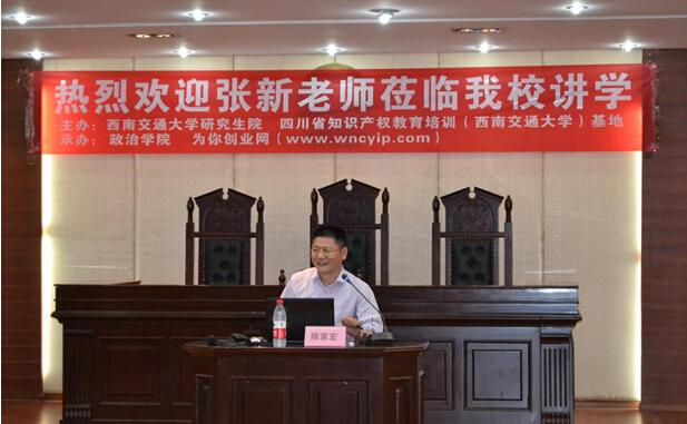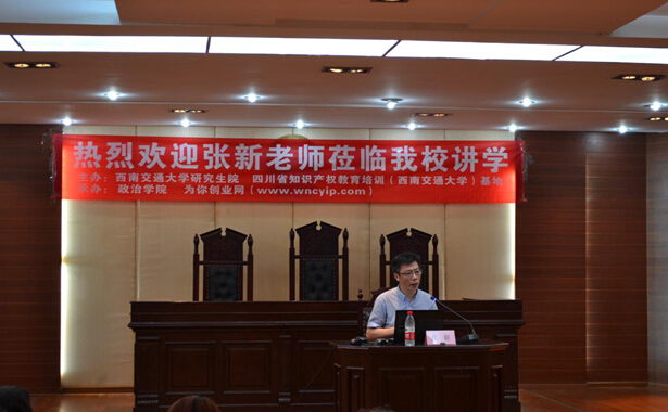 为迎接“4.26”世界知识产权日,我所张新所长应邀于2015年4月17日晚7时30分在西南交通大学犀浦校区模拟法庭5403教室进行“技术创新中的侵权规避与法律风险管控”的专题讲座。本次讲座由西南交通大学陈家宏教授主持,由西南交通大学研究生院、四川省知识产权教育培训(西南交通大学)基地主办,政治学院、为你创业网(www.wncyip.com)承办。参与本次讲座的有:教师、研究生、本科生以及法学专业学生。