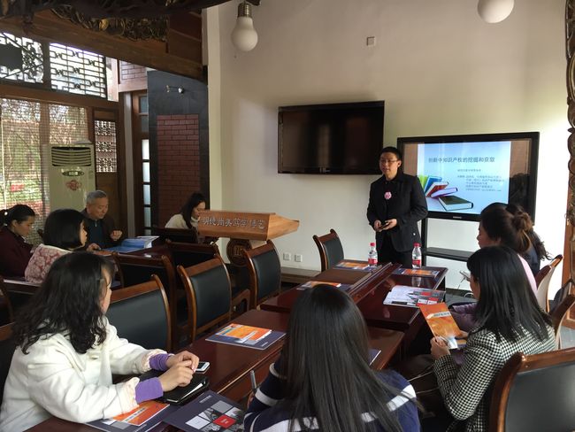 午晌过后,标榜学院图书馆内落英缤纷、风景如画,目之所及,由成都天嘉专利事务所副所长冉鹏程讲授的“创新中知识产权的挖掘和获取”专题讲座正在举行。