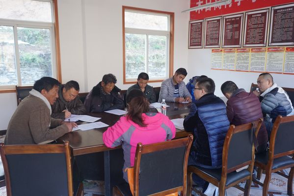 木日窝村扶贫工作座谈会首先召开。麻窝乡刘副乡长、木日窝村村支书红木基、驻村第一书记谭喜明、村长何尔甲、天嘉专利所方强副所长、工作人员刘林、华风事务所张晓芸副所长、四川康盛文化传播有限公司杨成飞总经理、成都泓奇实业股份有限公司赵天瑞总工程师等参加了座谈。