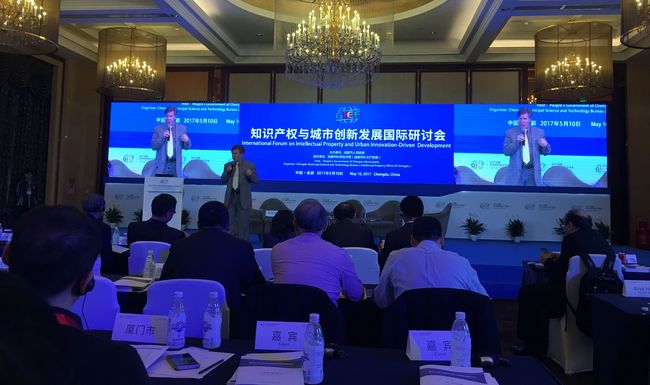 5月10日下午,作为首次举办的创交会重大活动——“知识产权与城市创新发展国际研讨会”在世纪城国际会议中心洲际宴会厅举行。成都市知识产权局局长卢铁城主持了嘉宾致辞环节,国家知识产权局副局长甘绍宁,四川省知识产权局局长谢商华,成都市委常委、副市长苟正礼,世界知识产权组织中国办事处主任陈宏兵出席会议并分别致辞;成都市相关区(市)县知识产权管理部门负责人、高校院所、企业、服务机构及媒体代表等约300人参加了研讨会。