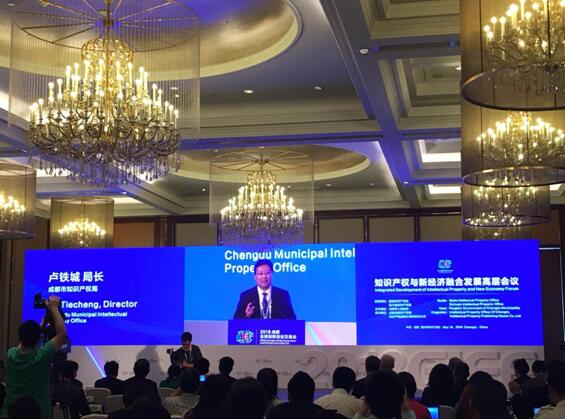 在知识产权与新经济融合发展高层会议上,世界知识产权组织中国办事处主任陈宏兵、四川省知识产权局局长谢商华、成都市副市长范毅分别出席会议并致辞,成都市知识产权局局长卢铁城和中国人民大学知识产权学院副院长郭禾、中国社会科学院金融研究所研究员尹中立等分别主持会议。