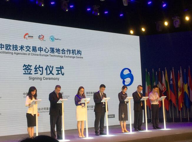 开幕式上还举行了中欧区域合作投资基金(成都)合作谅解备忘录签约、国际风投俱乐部中国中心落地合作和中欧技术交易中心落地合作机构三场签约仪式。成都天嘉专利事务所冉鹏程副所长代表我所出席中欧技术交易中心落地合作机构签约仪式,同欧盟项目创新中心、中国银行、中国平安等6位参会代表共同挥笔铭记这一历史性时刻。