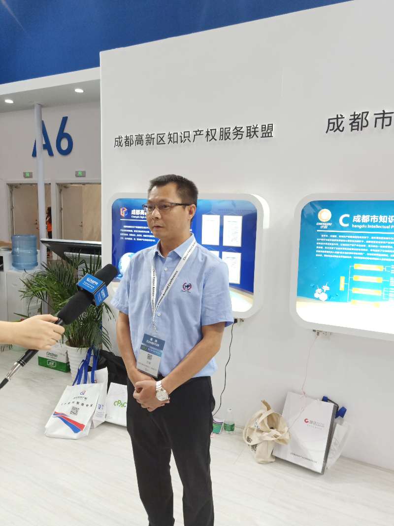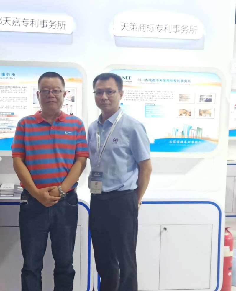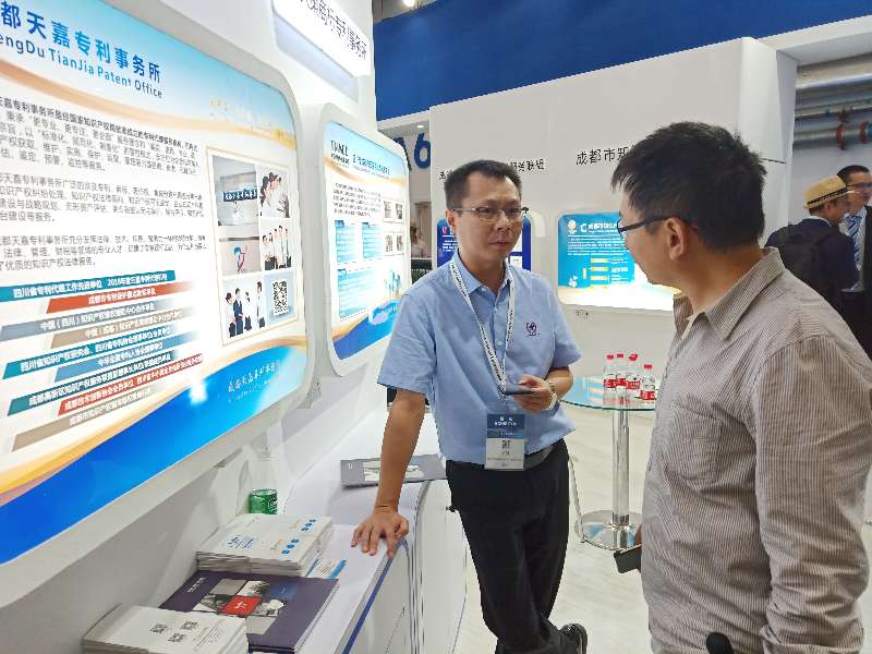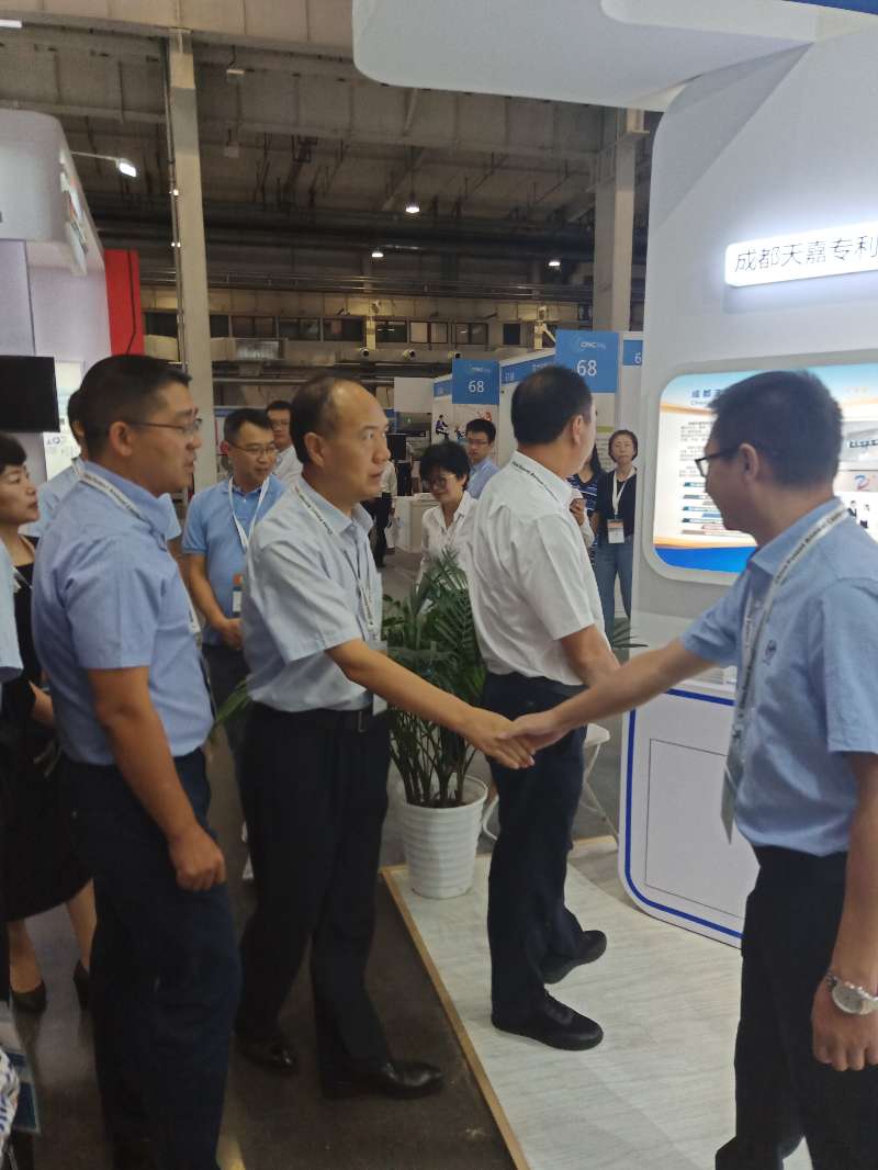 四川知识产权局党组书记赵辉、成都市科学技术局(市知识产权局)副巡视员李贵卿等一行领导参观成都天嘉专利事务所展位听取我所方强副所长汇报工作。