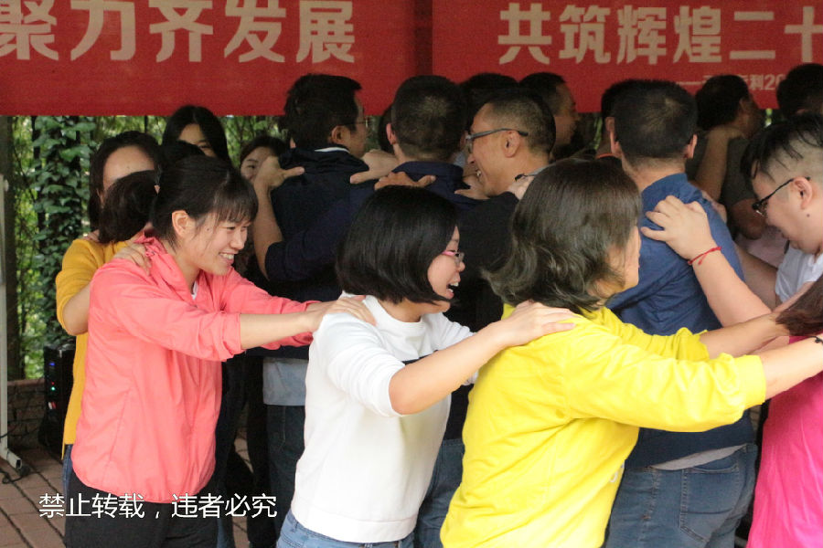 在下午最后一轮的“动力圈”游戏中,团队之间的合作精神更是发挥到了极致。磨红的双手,汗湿的脸颊,无一不展示着伙伴们的真诚付出和对同伴的鼎力相助。