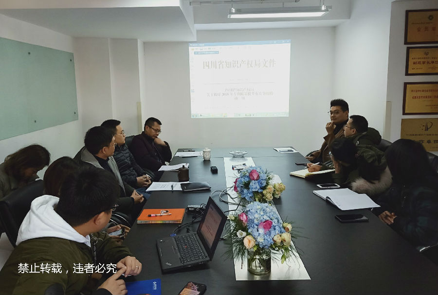 会上,毛光军副所长组织参会人员认真学习及解读了《国家知识产权局关于进一步提升专利申请质量的若干意见》 、《国家知识产权局办公室关于进一步做好2018年专利质量提升工作的通知》 、《国家知识产权局办公室关于开展专利申请相关政策专项督查的通知》 、《关于规范专利申请行为的若干规定》、《四川省知识产权局关于做好2018年专利质量提升有关事项的通知》 、《四川省知识产权局关于进一步提升全省专利申请质量的实施意见》、《四川省知识产权局关于做好专利申请相关政策专项督查的通知》等一系列政策文件。
