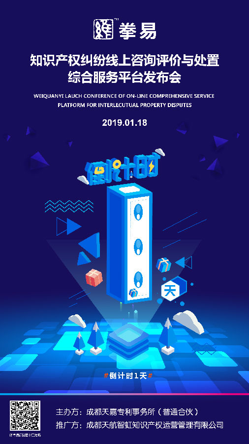 距离成都天嘉专利事务所“维拳易”知识产权纠纷线上咨询评价与处置综合服务平台发布会还有1天!