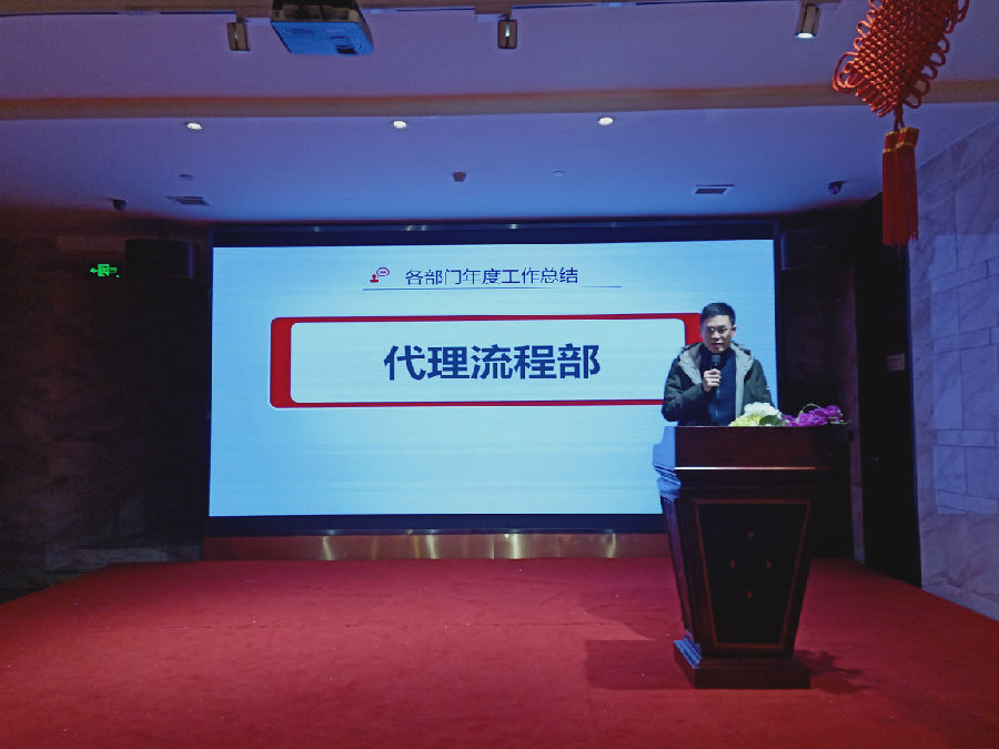 分别由毛光军副所长、李培茂部长、方强副所长、王红丽部长、蒋斯琪部长及赵丽副所长介绍代理流程部,法务部,项目实施与运营部,行政与财务部、天航公司,检索评议部及工会2018年的业务成绩及完成情况,通过数据的对比及完成过程中遇到的问题对2018年的总体情况进行分析总结,以便于在新的一年里发现问题,解决问题,更好的改进工作,提高各部门的业务能力,达到更高效,更优质的服务质量。