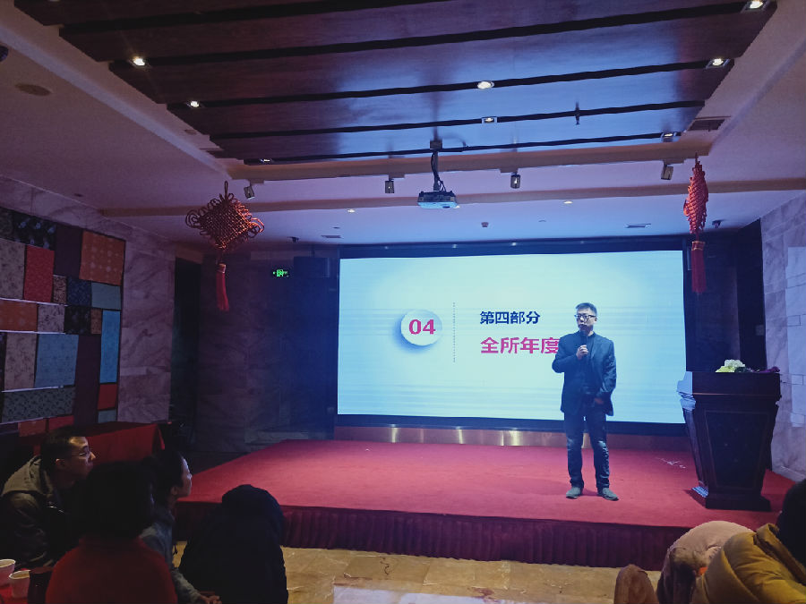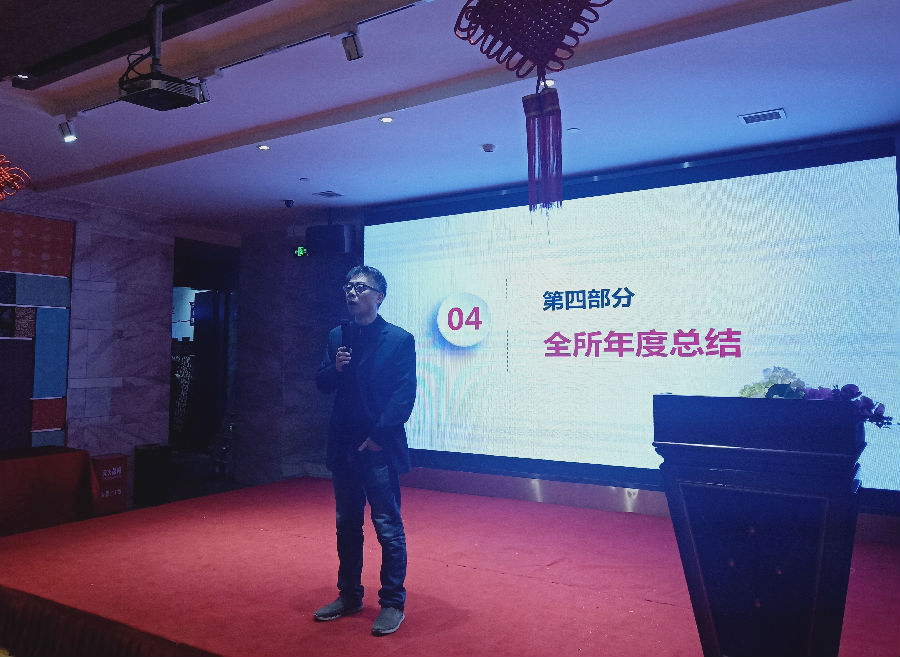 在大会最后阶段,张新所长发表全所年度总结。对事务所过去一年的优异成绩提出表扬和鼓励,并对全所去年的整体发展情况做出分析,提出改进意见,督促全员制订年度目标,力求在新的一年里展现新面貌,做出新成绩。
