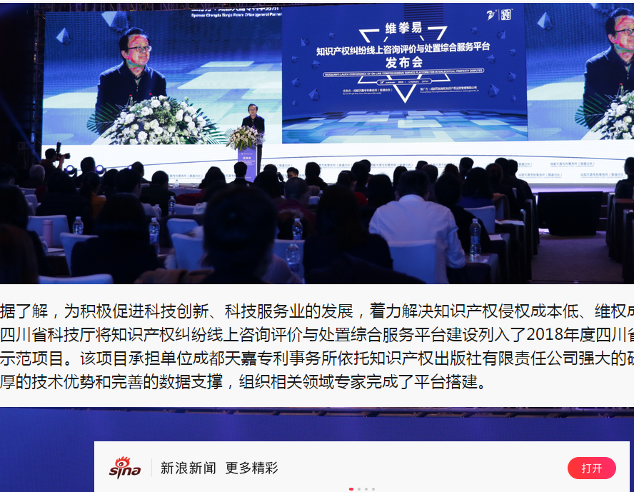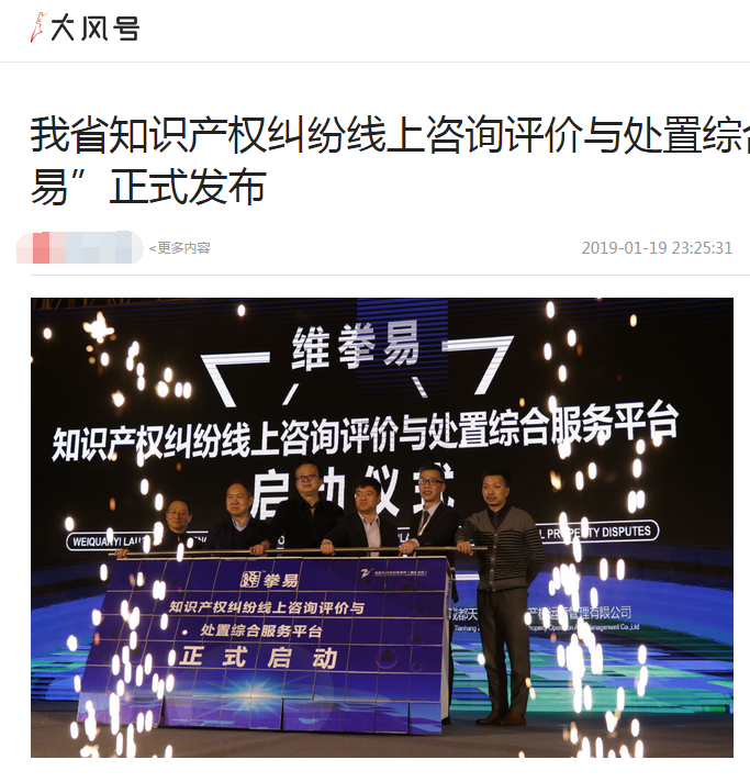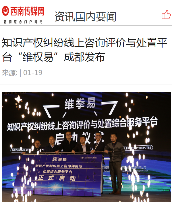 2019年1月18日下午,四川省首个知识产权纠纷线上咨询评价与处置综合服务平台“维拳易”正式由我所举办发布。