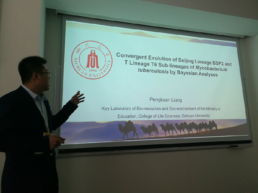 38、由四川大学生命科学学院博士生梁鹏宽进行题为《利用WGS进行基因分型是推断结核病传播和耐药性的一种工具》的课题演讲。