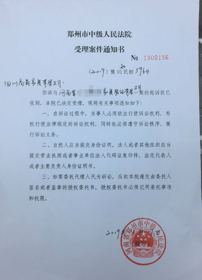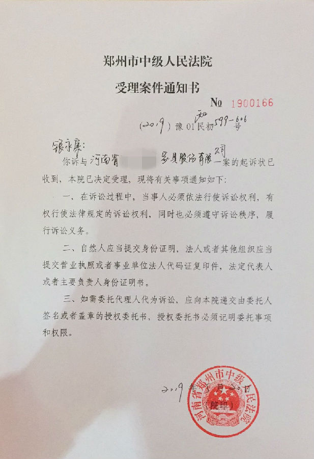 目前,郑州市中级人民法院已经受理并立案【案号为(2019)豫01民初596、599-606号】。