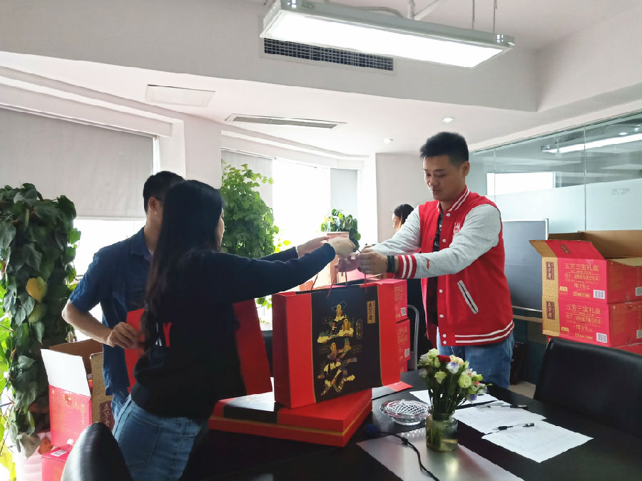 伴随着行政部的一声吆喝,天嘉小伙伴们高高兴兴的前往会议室领取端午大礼包。