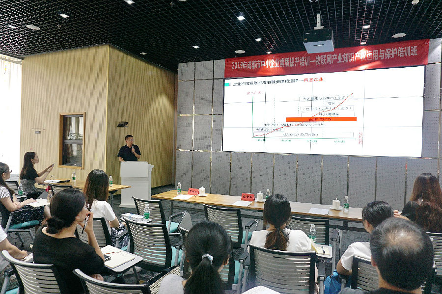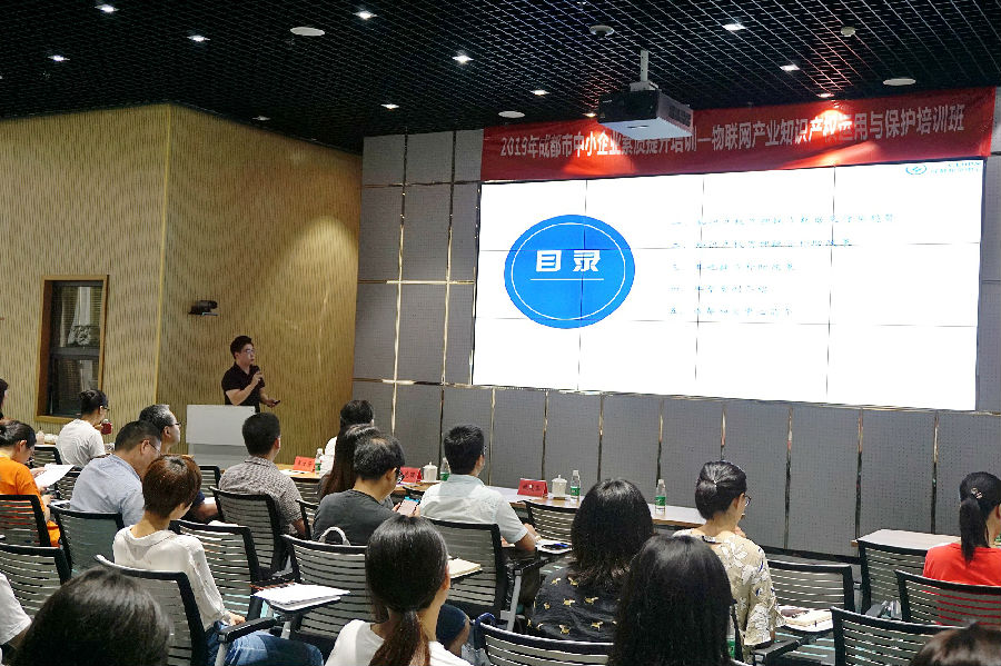 培训过程中主要邀请了来自国家知识产权局专利局专利审查协作四川中心、成都知识产权交易中心、成都高新区人民检察院、以及代理机构和贷款公司的培训专家为现场学员就《物联网产业专利挖掘与布局》、《四川省企业知识产权质押融资支持政策解读》、《拍案说法:物联网产业知识产权保护》、《物联网企业知识产权管理与运用实务》和《利用知识产权质押融资,助力物联网产业发展》等内容进行专题授课。