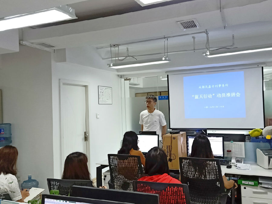为维护专利代理行业健康发展,贯彻落实“蓝天”专项整治行动,2019年8月20日上午,成都天嘉专利事务所召开了“蓝天”行动动员推进会,组织全体成员认真学习“蓝天”行动精神,严肃工作内容,杜绝不良行为,为行业发展营造良好的代理环境。
