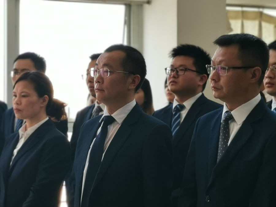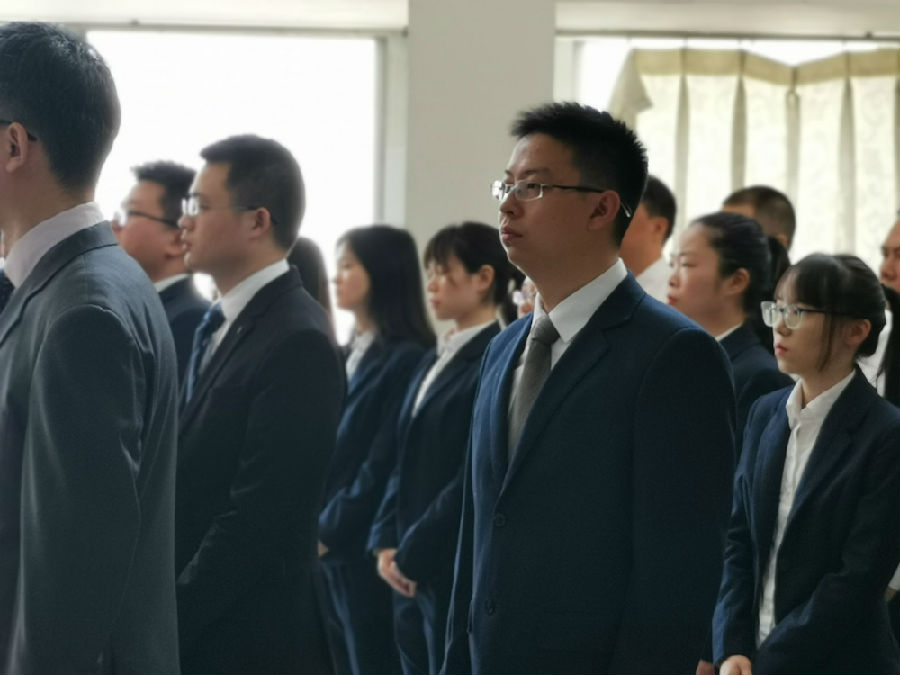 宣誓仪式由成都天嘉专利事务所合伙人、副所长冉鹏程主持,由合伙执行负责人赵丽代表事务所郑重宣读承诺书,优秀专利代理师向丹代表全体专利代理师宣读承诺书。随后,成都天嘉专利事务所全体员工肃立齐唱国歌,共同见证这一庄严而极具重要意义的时刻。