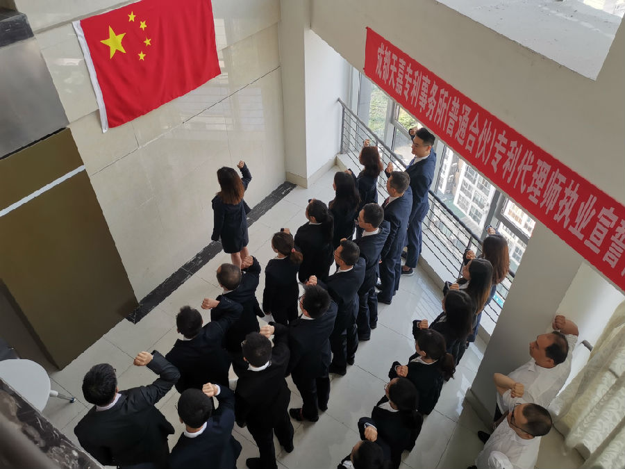 2019年8月23日,成都天嘉专利事务所隆重的举行了“专利代理师执业宣誓仪式”,全体专利代理师在国旗下以誓词铭己志,勇担使命,为知识产权事业健康发展庄严宣誓。