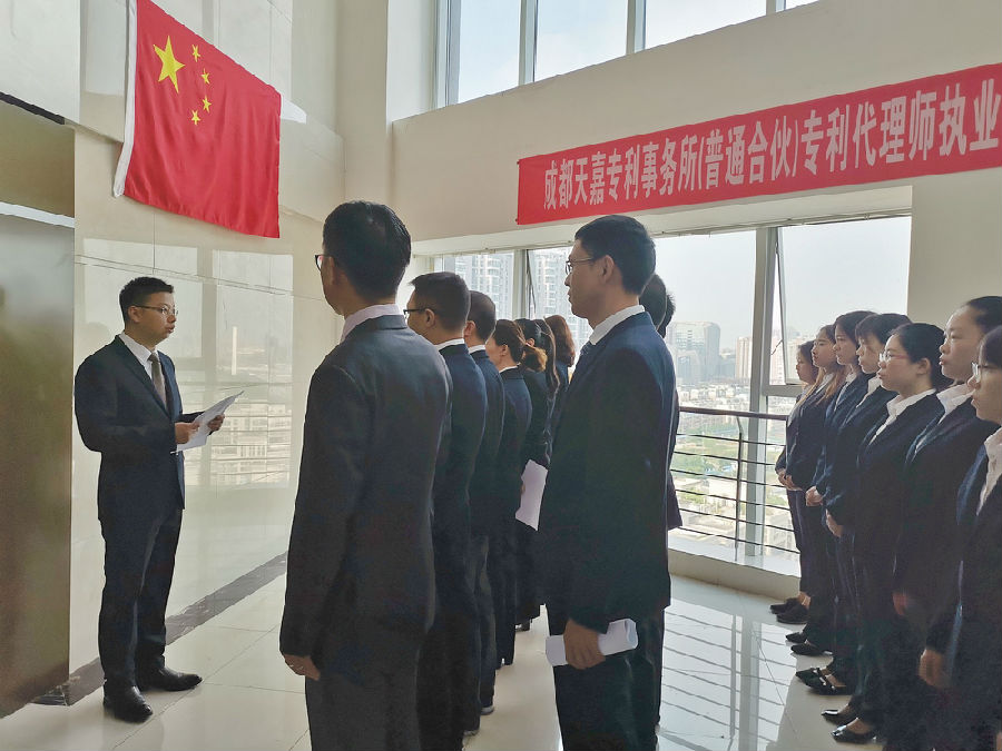 在日后的代理活动中,成都天嘉专利事务所的每一位专利代理师将不忘初心,牢记使命,以誓词为实践准则,以高度的责任心和使命感践行执业精神!