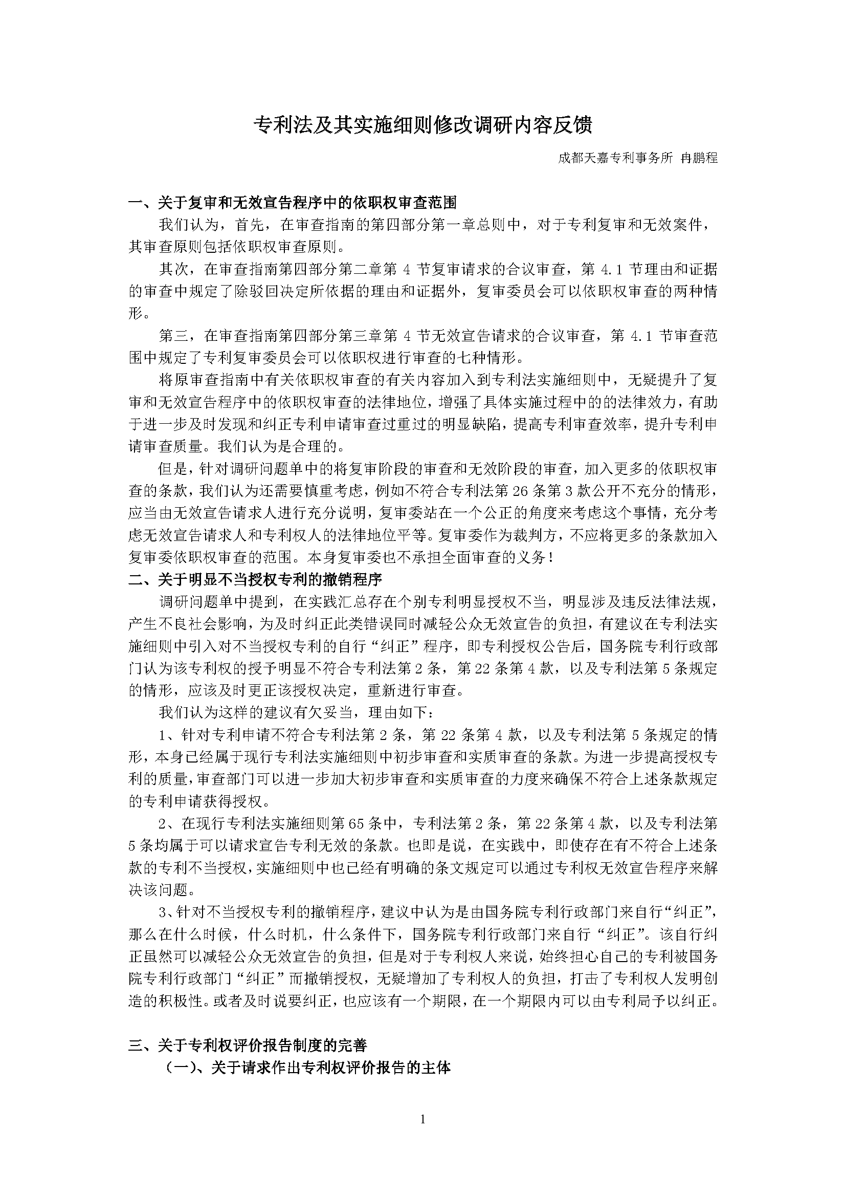 成都天嘉专利事务所副所长冉鹏程代表事务所受邀参会并提出相关意见。