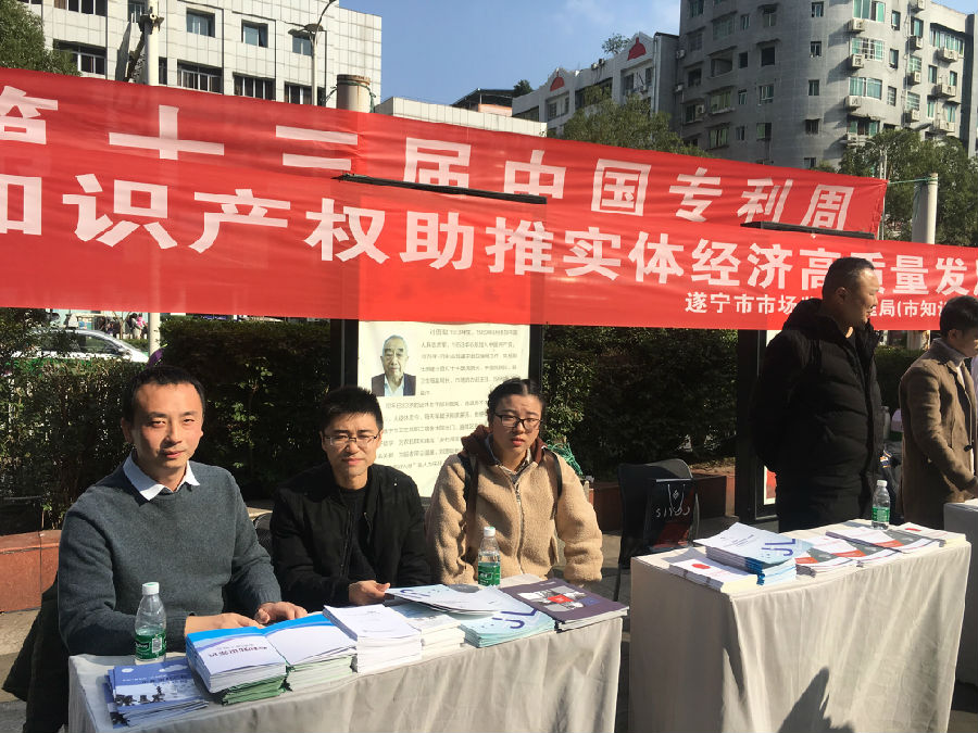 12月5日下午,遂宁市市场监督管理局在裕丰园广场开展了第十三届中国专利周活动。活动中通过分发知识产权宣传材料、设立知识产权咨询台、展览专利海报等方式面向社会群众普及知识产权方面的知识,强化知识产权保护意识。