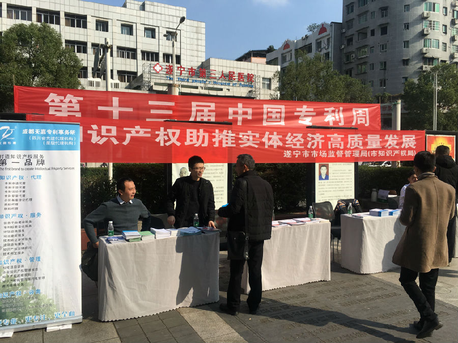 成都天嘉专利事务所分别参加了成都市新都区及遂宁市组织举办的第十三届中国专利周活动。通过助力知识产权宣传充分发挥知识产权服务机构在市场上的作用,同时通过组织内部培训、走访企业等方式不断提升自身服务水平以便于更好的服务大众。