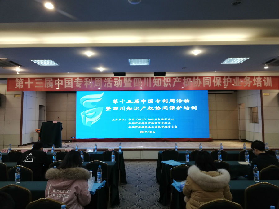 12月6日上午,新都区市场监管局联合中国(四川)知识产权保护中心、新都区工业园区管理委员会组织开展了第十三届中国专利周活动暨四川知识产权协同保护业务培训。中国(四川)知识产权保护中心主任杨波、副主任李龙,新都区市场监管局副局长李先春等领导出席了活动。