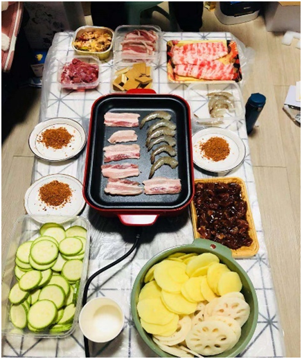 不过为了满足口腹之欲,宅在家里并且无聊透顶的我也和家人一起行动了起来,协力搞出了美味的家庭自制火锅。当然,喜爱吃烤肉的我,在接下来的假期中也充分利用家里的食材和器具为自己做了一顿鲜美的烤肉。