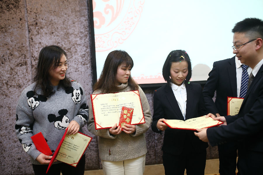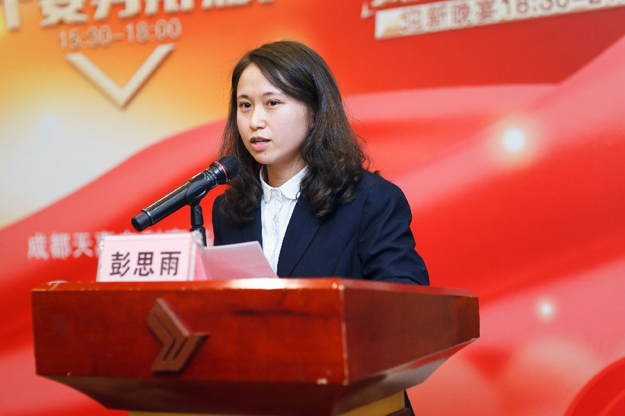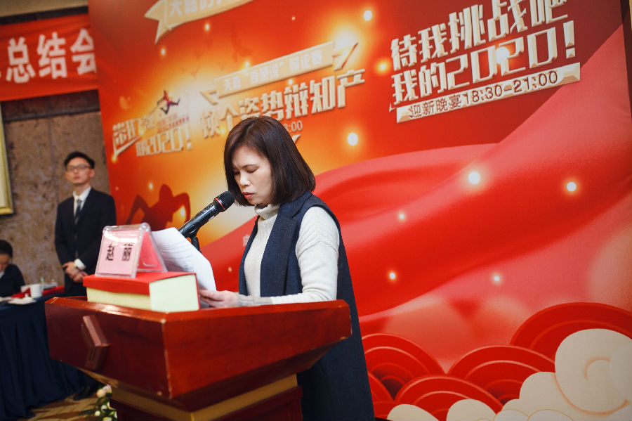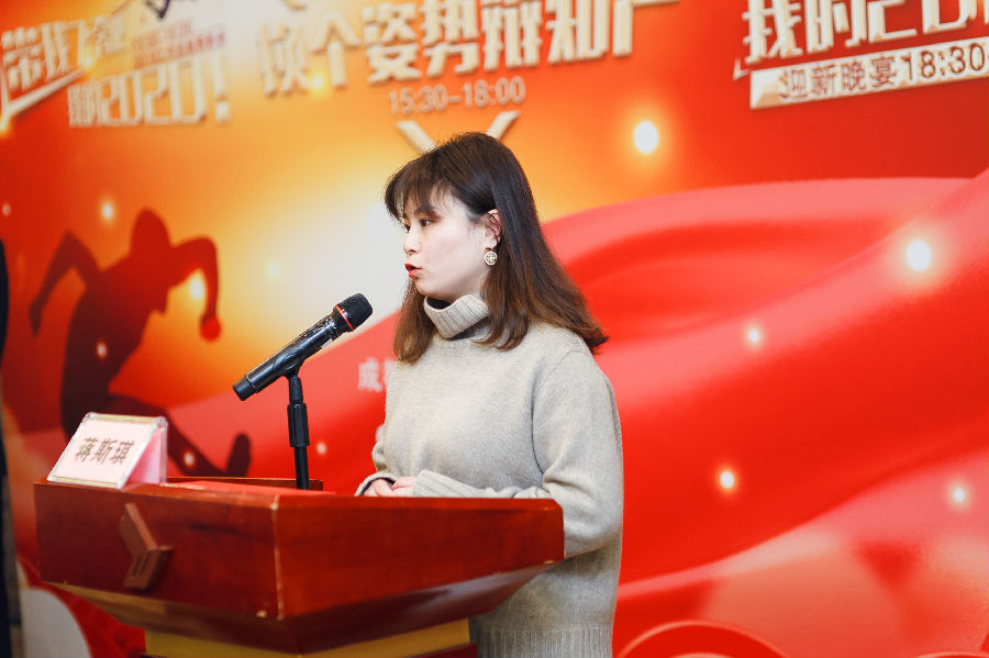此次年会中还特别安排了员工代表发言环节。来自代理部的专利代理师赵凯、专利代理师王朋飞、专利代理师彭思雨,法务部法务专员胡丹丹,以及行政部品牌运营专员董境,分别用最真实的声音分享了2019年的感悟和体会。