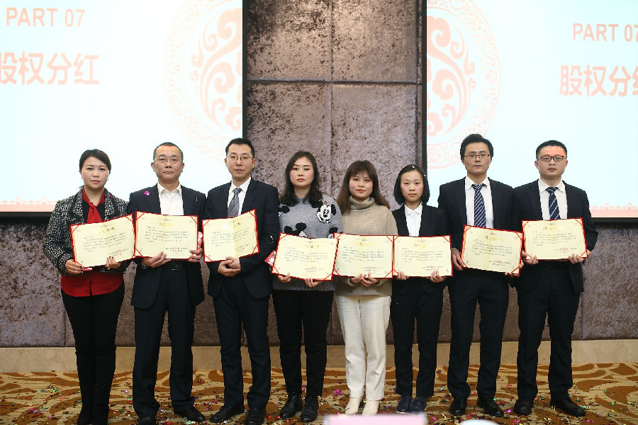 年会中还颁发了十年功勋成就奖;评选了2019年度优秀员工;进行了新一届的工会选举;颁发了年度股权分红证书并发放了红利。