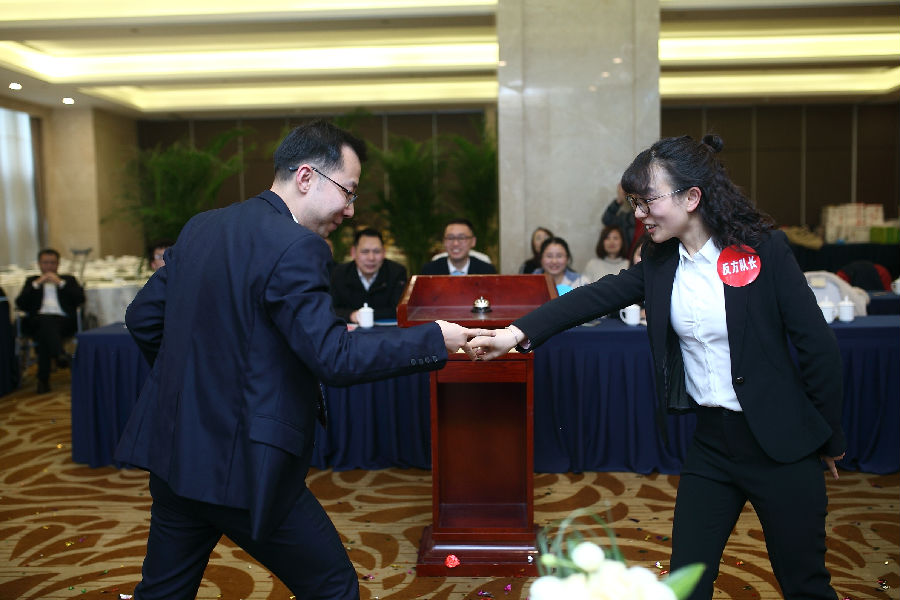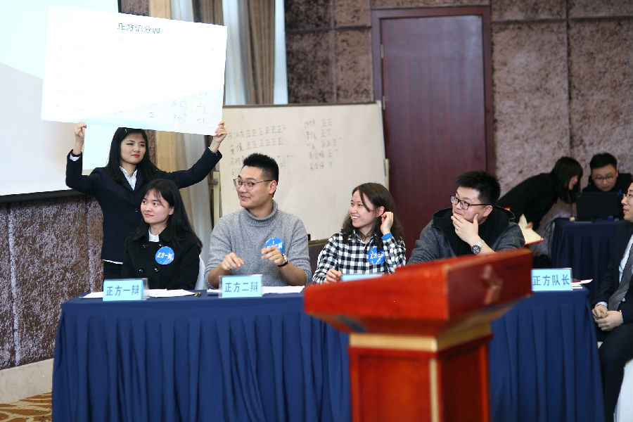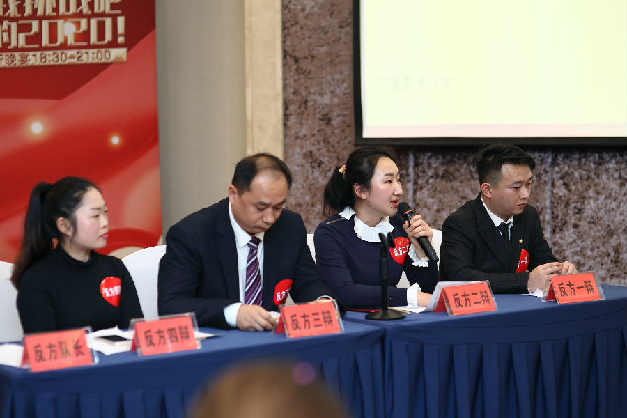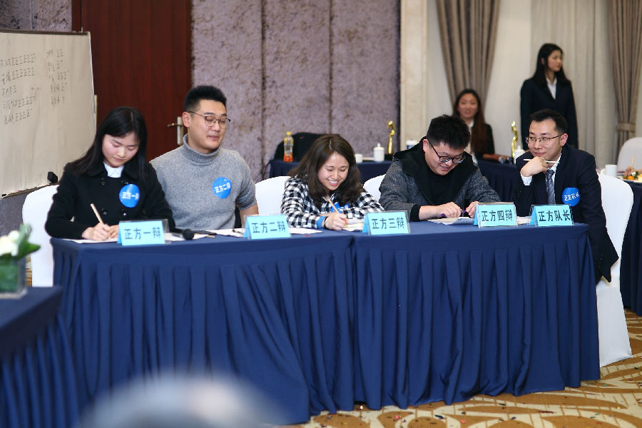 辩论赛由张新所长主持,代理部的团队作为正方,同由其他部门成员组成的反方一起开始了紧迫的辩论。