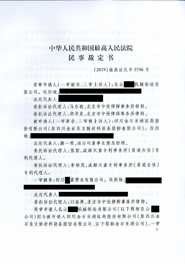 金石亚药诉昆山某机械制造有限公司、四川某晨管业有限公司这一案件还于2019年4月分别入选了《四川省民营企业知识产权司法保护典型案例》以及《2018年四川法院知识产权司法保护十大典型案例》。