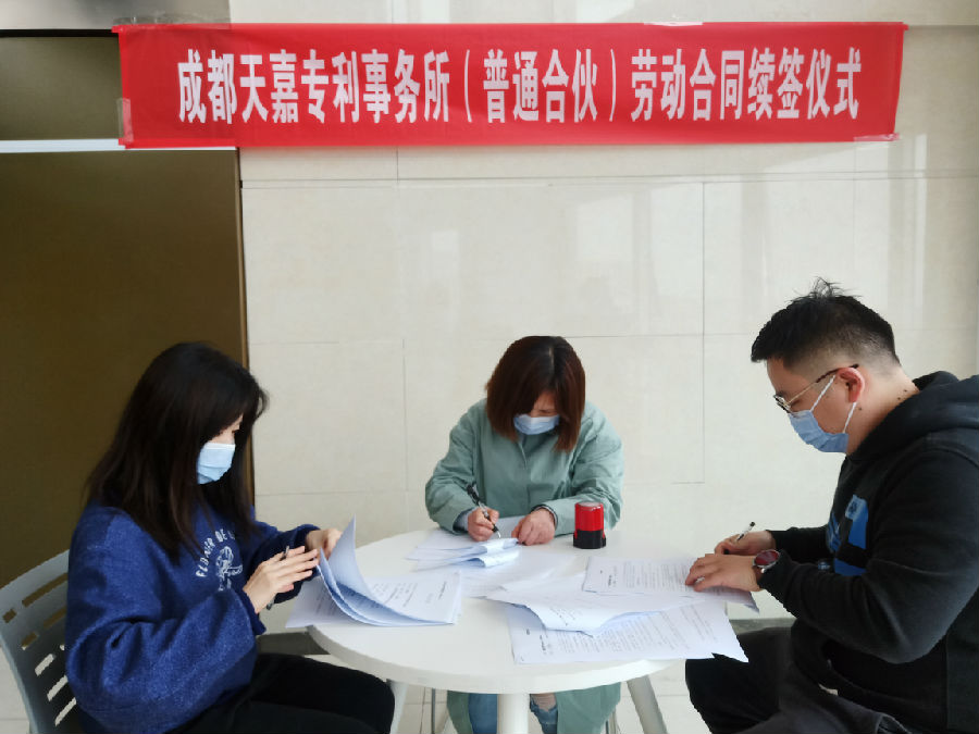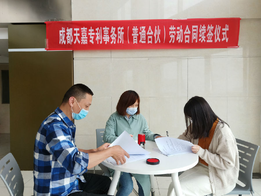 2020年4月17日下午,为了保障员工的合法权益,成都天嘉专利事务所组织合约到期的员工举行了一场劳动合同续签仪式。