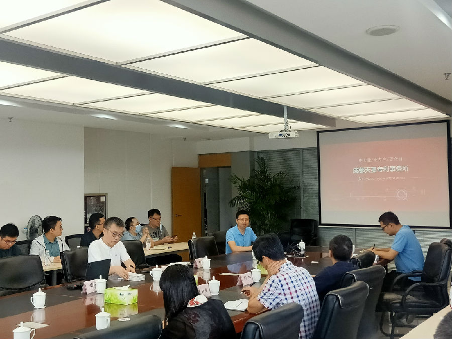 在交流过程中,冉鹏程副所长向参会的相关部门负责人及工作人员详细的介绍了成都天嘉专利事务所包括主要服务、精英团队、经典案例、服务成绩等在内的具体情况,并针对企业内的知识产权申请及授权情况提出了参考性的建议。