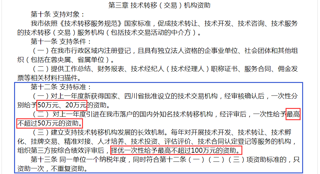 在接下来的知识产权融资、交易等业务介绍的环节中,成都知识产权交易中心还对《成都市技术交易资助管理办法(试行)》(下称办法)进行了解读。其中,《办法》明确了技术交易活动资助、技术转移(交易)机构资助的支持对象、支持条件和支持标准,以及具体的申请程序等,并对支持标准中的具体资助金额进行了详细规定。