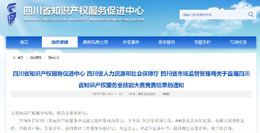 近日,四川省知识产权服务促进中心正式对2020年首届四川省知识产权服务业技能大赛竞赛的获奖名单进行了公布。