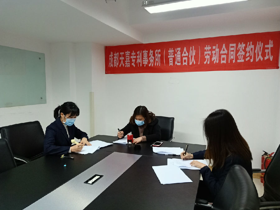 2021年1月6日下午,成都天嘉专利事务所组织开展了员工劳动合同签约仪式,与刚满合同期限的小伙伴们再次签约。