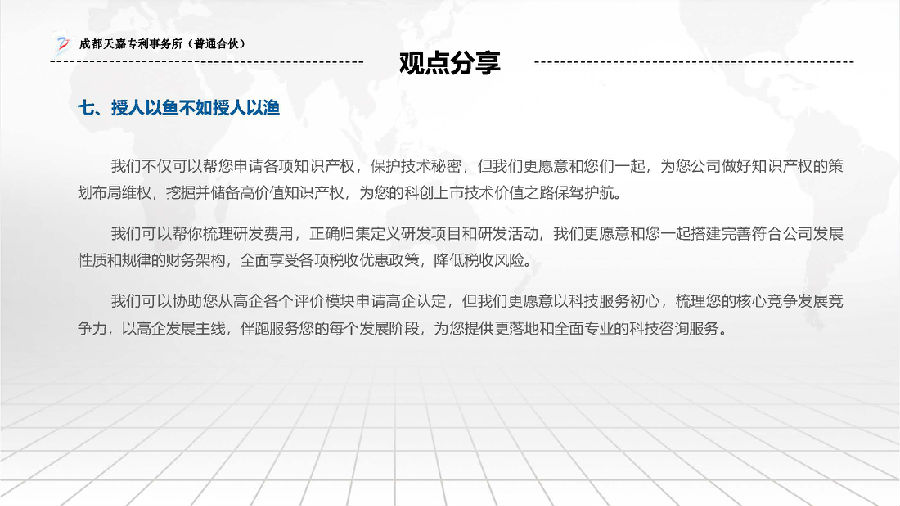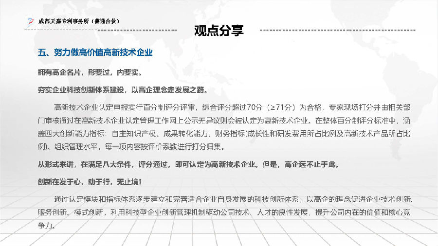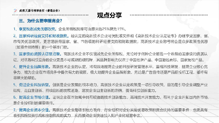随着企业对于高新技术企业的重视,我所与成都种信企业管理有限公司达成战略合作关系,双方依托独具特色的合作模式,发挥各自的专业优势,为企业提供更为便捷、专业、高效的知识产权代理和高新技术企业咨询等综合科技咨询服务,共同助力一批又一批国家高新技术企业的培育和发展。