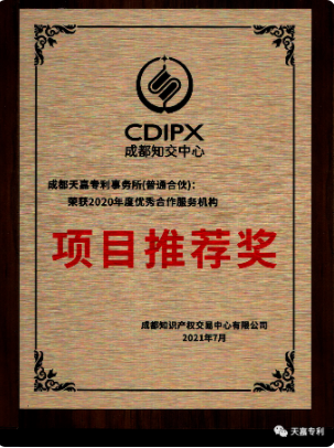 ——成都天嘉专利事务所荣获“2020年度优秀服务机构——项目推荐奖”
