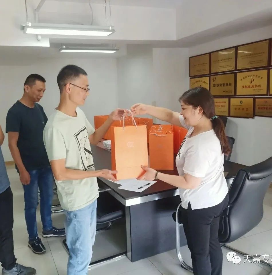 成都天嘉专利事务所为员工们发放了早已准备好的节日福利,