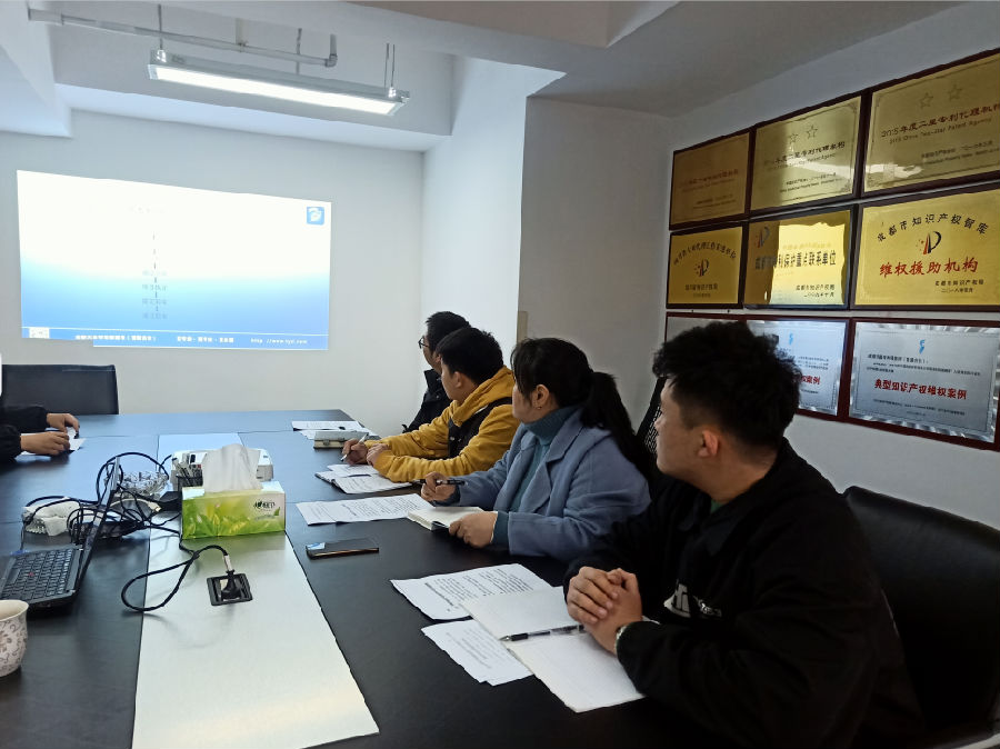 2021年12月24日下午,成都天嘉专利事务所新员工内部培训如常展开,此次培训是新员工培训计划内容中的最后一期,由合伙人方强主导讲解。
