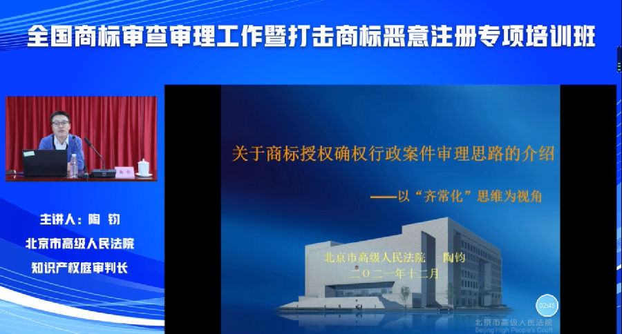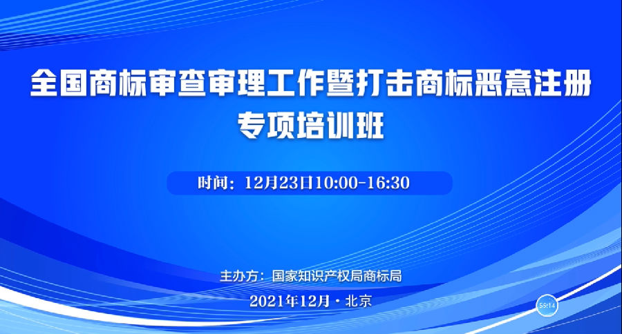 为深入贯彻习近平新时代中国特色社会主义思想,认真落实《知识产权强国建设纲要(2021-2035年)》,强化商标知识产权意识,形成规范有序的商标注册申请的社会共识,2021年12月23日至24日,国家知识产权局办公室举办了“全国商标审查审理工作暨打击商标恶意注册专项培训班”。