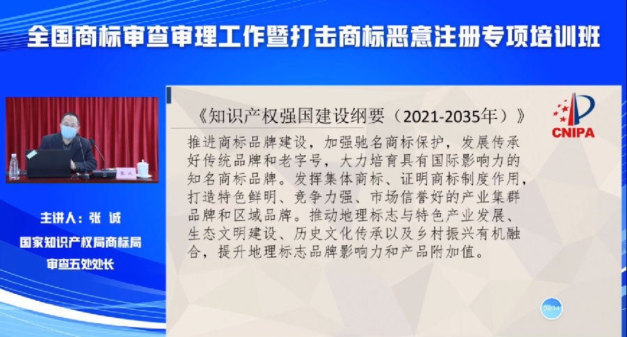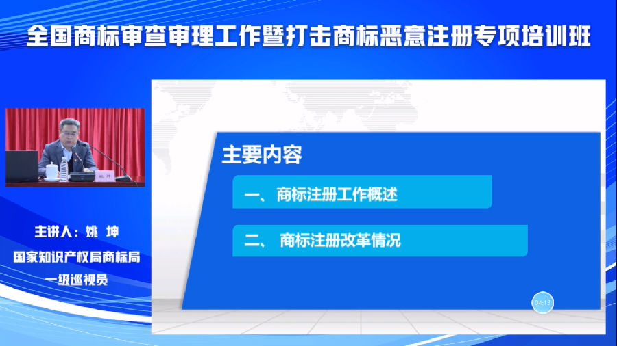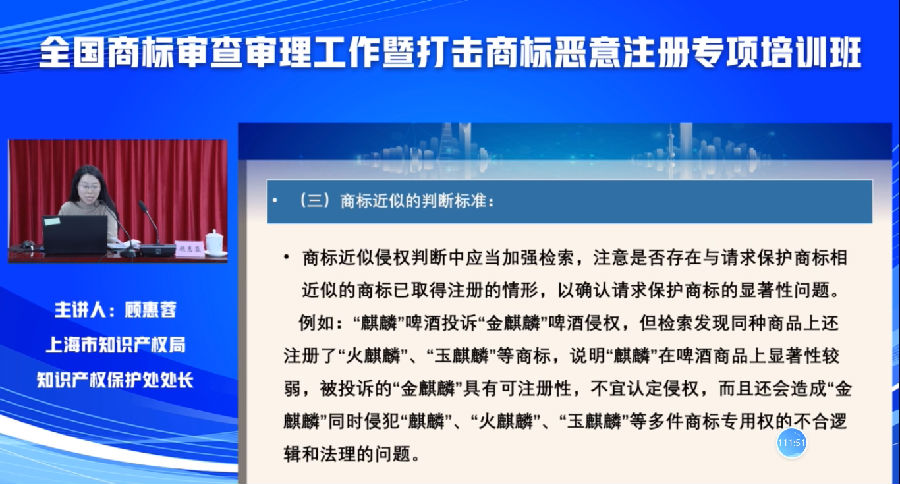 此次培训班以线上直播的形式展开,主要内容包括商标注册便利化改革成果宣讲;新修订《商标审查审理指南》解读,以及对商标审查实操、商标行政确权与行政执法、商标知识产权执法等业务工作进行讲解。