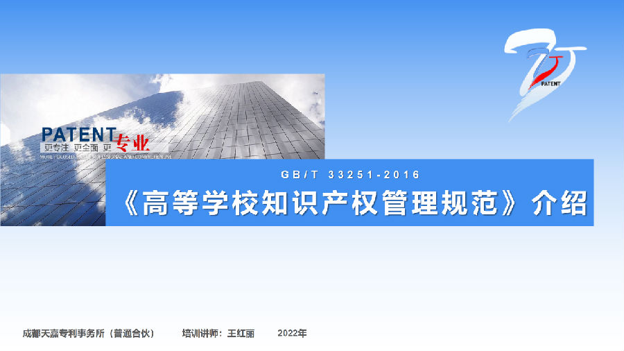 在学术专题发言过程中,成都天嘉专利事务所合伙人、成都天航智虹知识产权运营管理有限公司总经理王红丽,以《高等学校知识产权管理标准介绍》为题,通过对高校知识产权现状的分析,引申出贯彻实施高校知识产权管理体系的重要性。还分别从内容介绍、体系构成、流程梳理等方面分享了关于知识产权管理国家标准及知识产权管理体系的相关知识。
